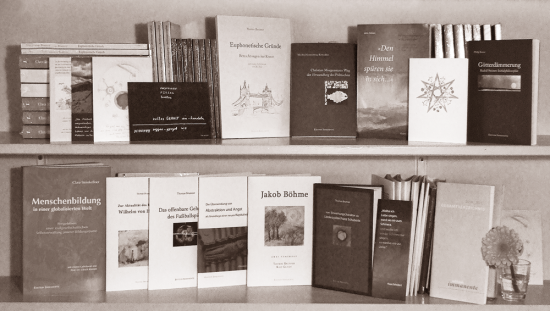 Den Anfang machte eine Broschüren-Reihe mit Aufsätzen und Vorträgen von Thomas Brunner, bald schlossen sich die Veröffentlichungen von Corinna Gleide, Ralf Gleide und Sascha Scholz, sowie die deutsch-spanische Veröffentlichung mit einem Text des Rechtsphilosophen Felipe González Vicén an. An das erste Hardcover wagten wir uns 2010 mit dem Buch über Franz Schuberts Liederzyklen von Thomas Brunner, und im Lauf der Jahre wurden im kleinen Büro in der Dachwohnung am Prenzlauer Berg gleich mehrere Manuskripte zu druckfertigen Dateien verwandelt: 2012 erschien die überarbeitete Diplomarbeit «Menschenbildung in einer globalisierten Welt» von Clara Steinkellner, Jens Gökens jahrelange Studien zur geschichtlichen Sympomatologie fanden in drei Taschenbüchern einen ersten öffentlichen Niederschlag, 2013 erschien mit «Euphonetische Gründe – Betrachtungen zur Kunst» eine weitere Aufsatzsammlung von Thomas Brunner.